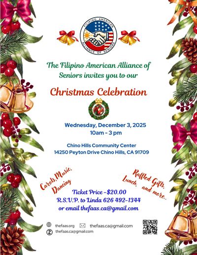 We are thrilled to welcome you to the official website of the Filipino American Alliance of Seniors (FAAS). We are a 501(c) (3) non-profit organization registered with the IRS and the State of California. FAAS is dedicated to connecting, supporting, and empowering the cherished seniors within our community.
